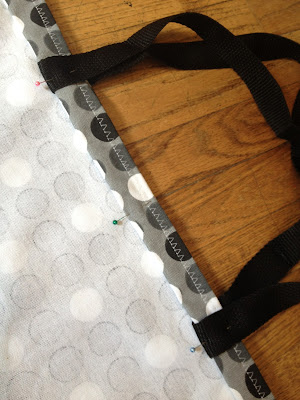 and pin the straps inside. I measured 6" from the edges so that they would be even.