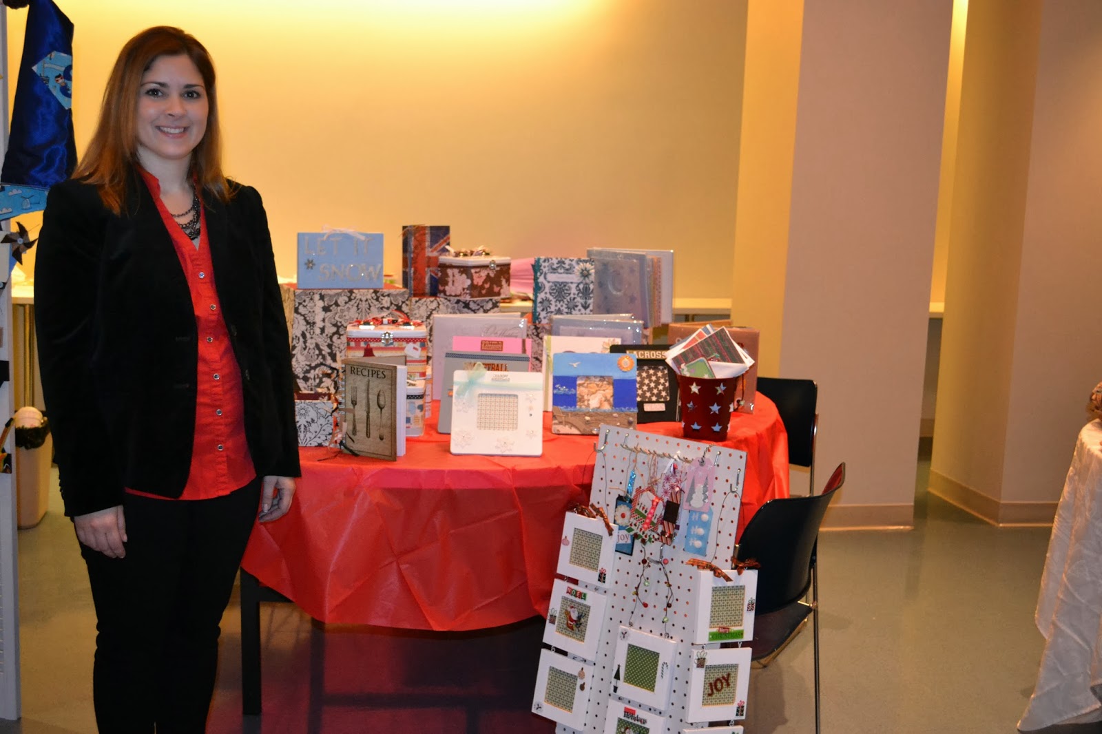 Here is my lovely friend Laurie at her table, she makes beautiful tags, scrapbook, frames and recipe boxes!